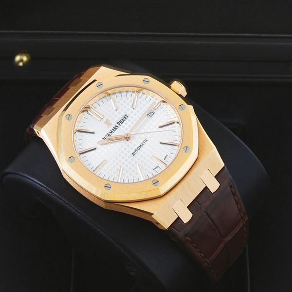 Orologio da polso, automatico, impermeabile, in oro rosa 18K, con datario e chiusura deployante originale in oro. Accompagnato dalla scatola originale, istruzioni e Garanzia.