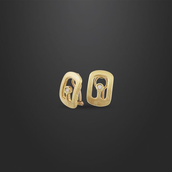 a fibbia in oro giallo, ognuno con brillante. Corredati da custodia originale, gr. 10,6.