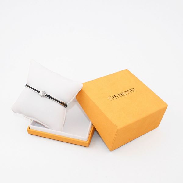 costituito da una collana girocollo in oro bianco a sottile catenella trattenuta anteriormente da una sferetta in oro giallo con pendente a quadrifoglio profilato da brillantini e da un bracciale semirigido in acciaio e carbonio. Corredati ciascuno da custodia originale.