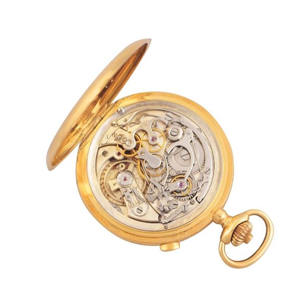 Cassa: da tasca, cronografo, rattrappante, in oro giallo 18K, No.363665