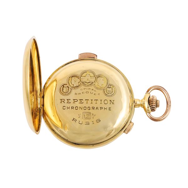 Quadrante: in smalto, numeri Arabi, contatore dei secondi a ore 6. Sfere a pera