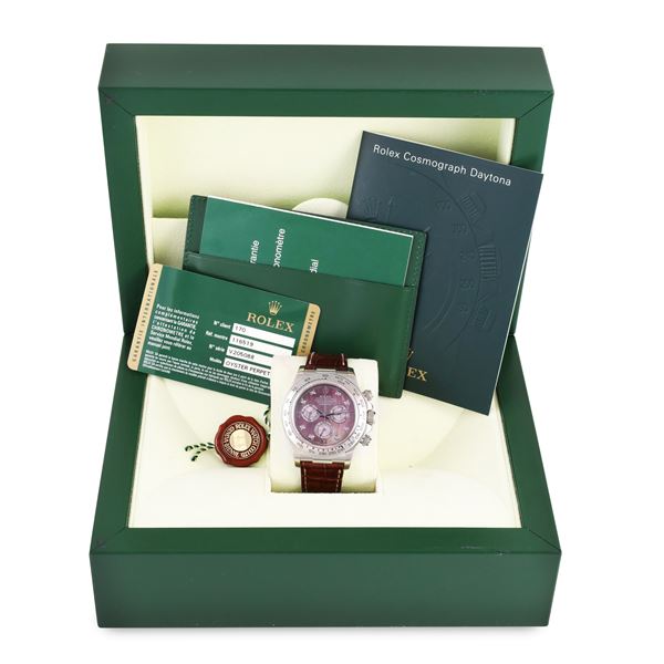 Quadrante: madreperla con indici in brillanti, contatori in meteorite per i secondi, 30 minuti e 12 ore. Sfere a bastone