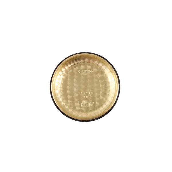 Cassa: in oro giallo 18K, No. 398215, ghiera zigrinata con numeri Arabi, fondello a vite