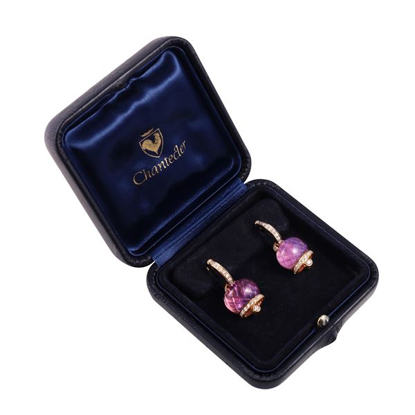 in oro rosa con ametiste incise e brillanti, gr. complessivi 12,2. Corredati da custodia originale.