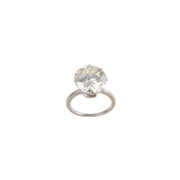 taglio a brillante del peso di 7,76 ct ca., montatura in oro bianco, gr. 3,2.