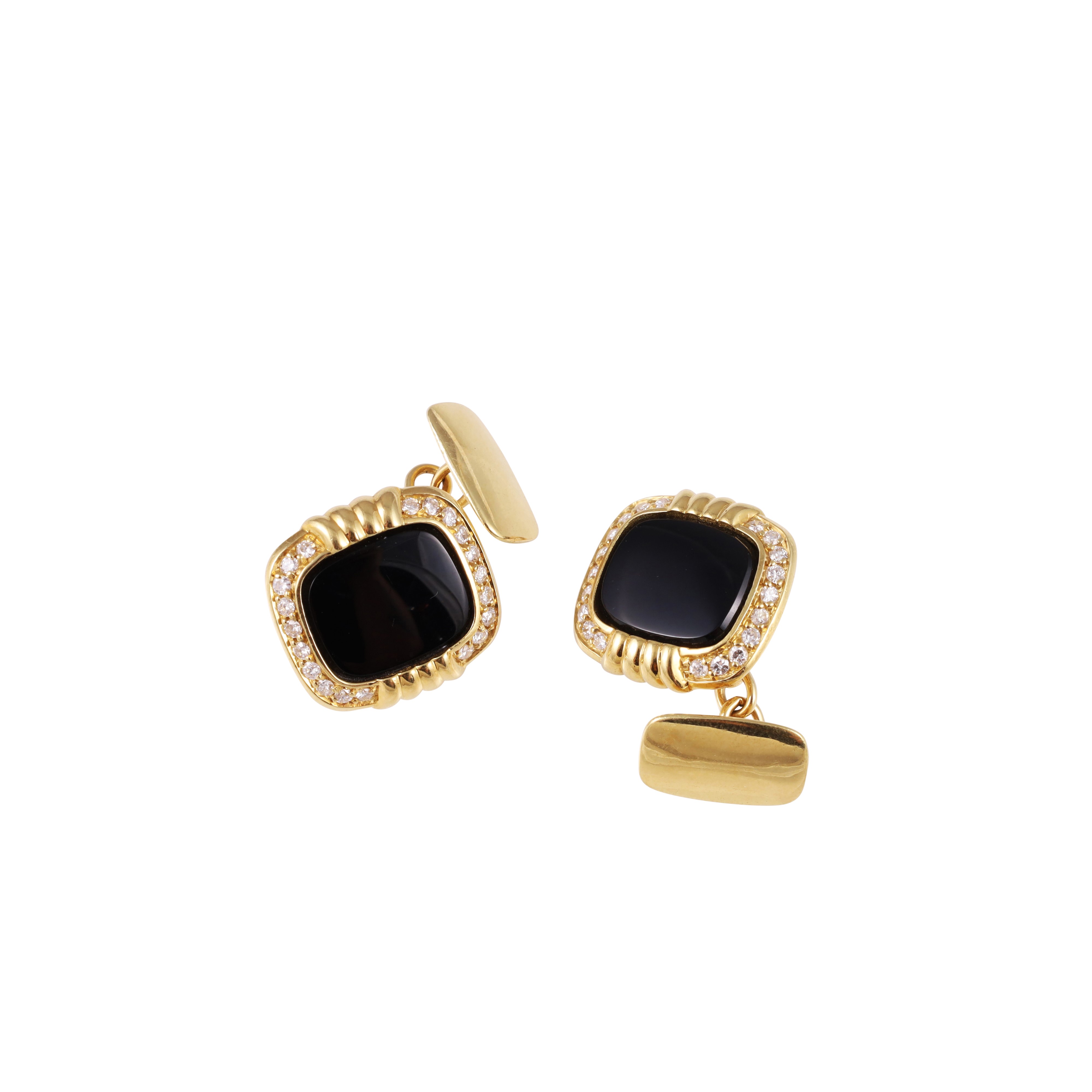 in oro giallo, con onici e brillanti, gr. 13,1.