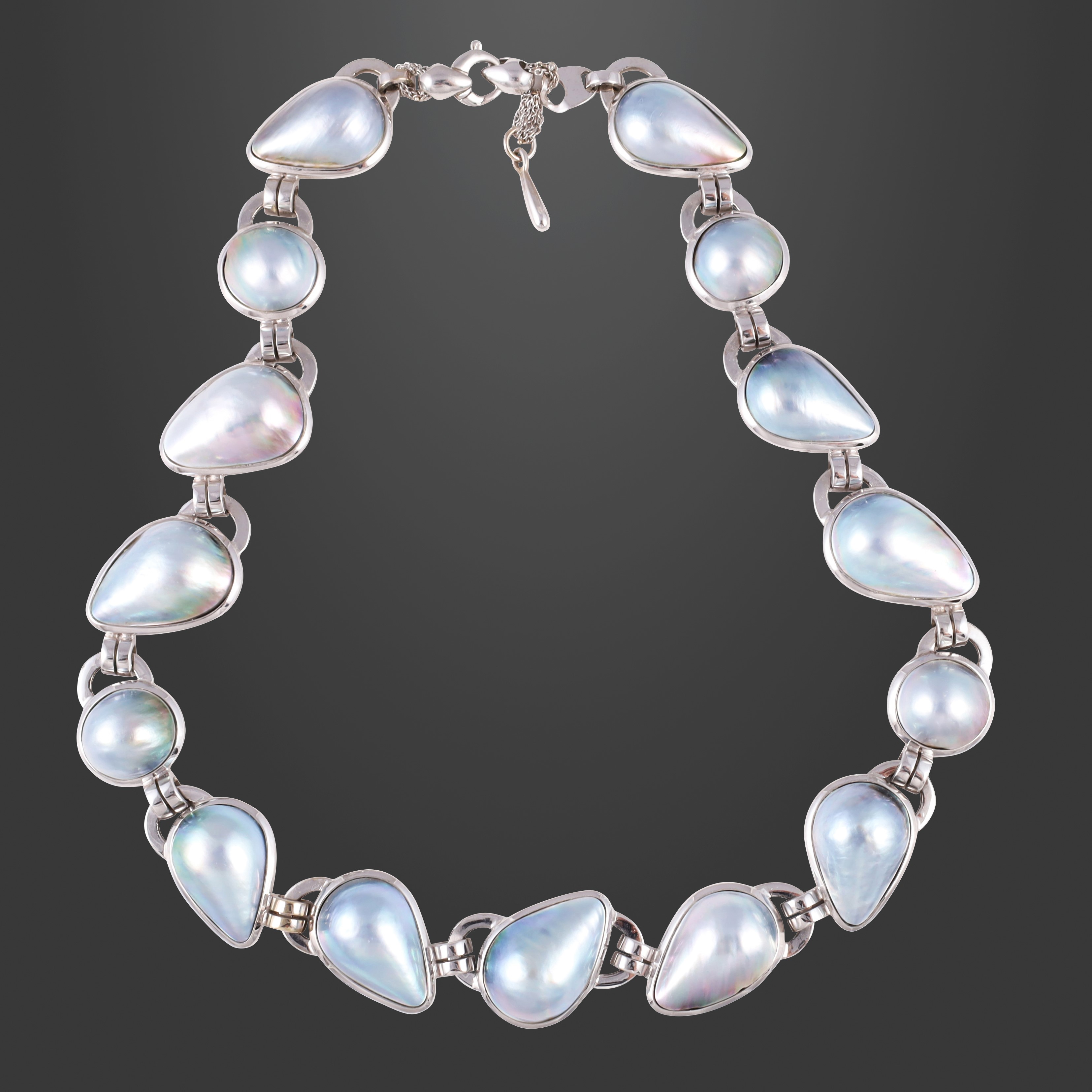 in oro bianco con perle coltivate "blister" disposte in linea, gr. 121,6.