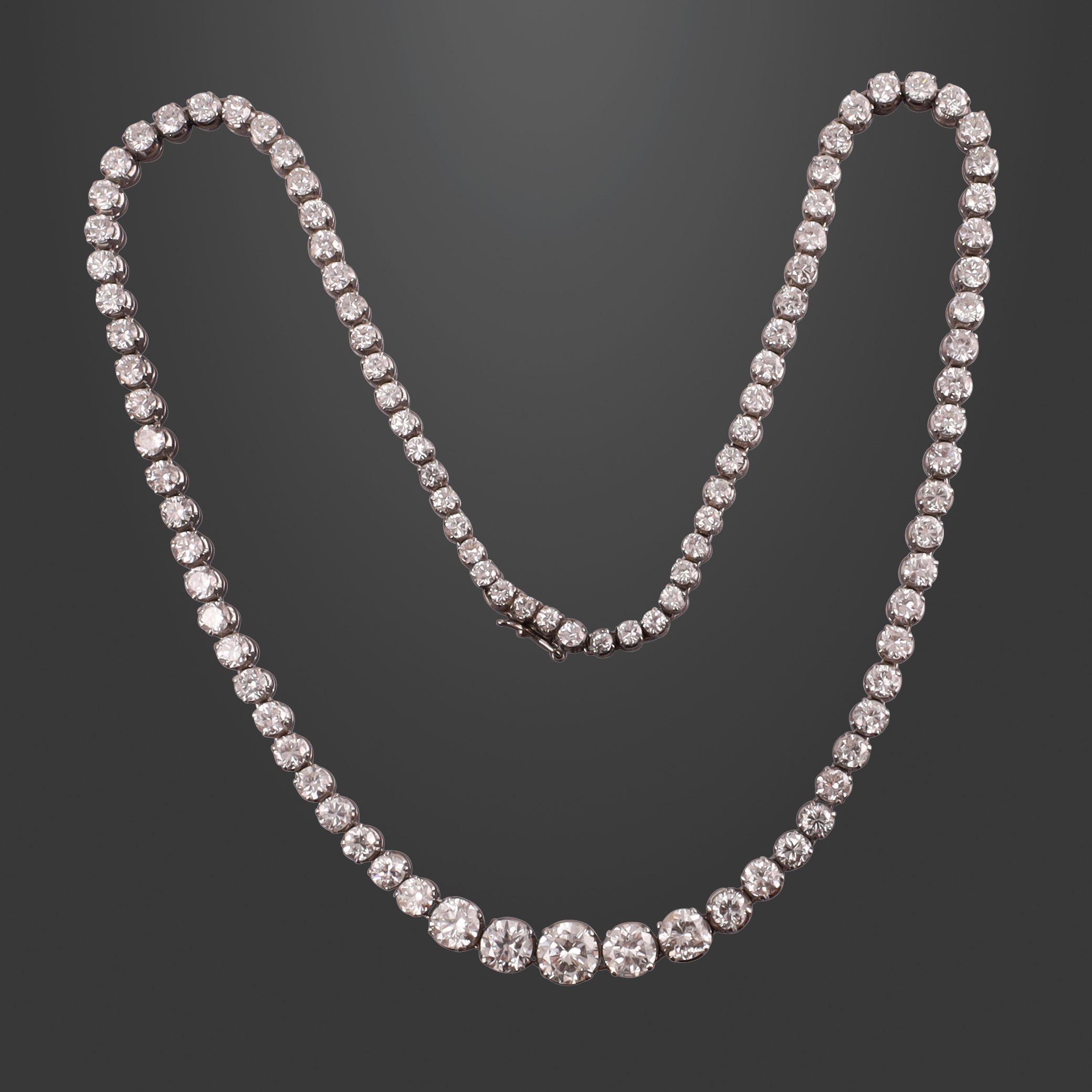 rivière in oro bianco con brillanti posti in gradazione del peso complessivo di 10 ct ca., gr. 23.