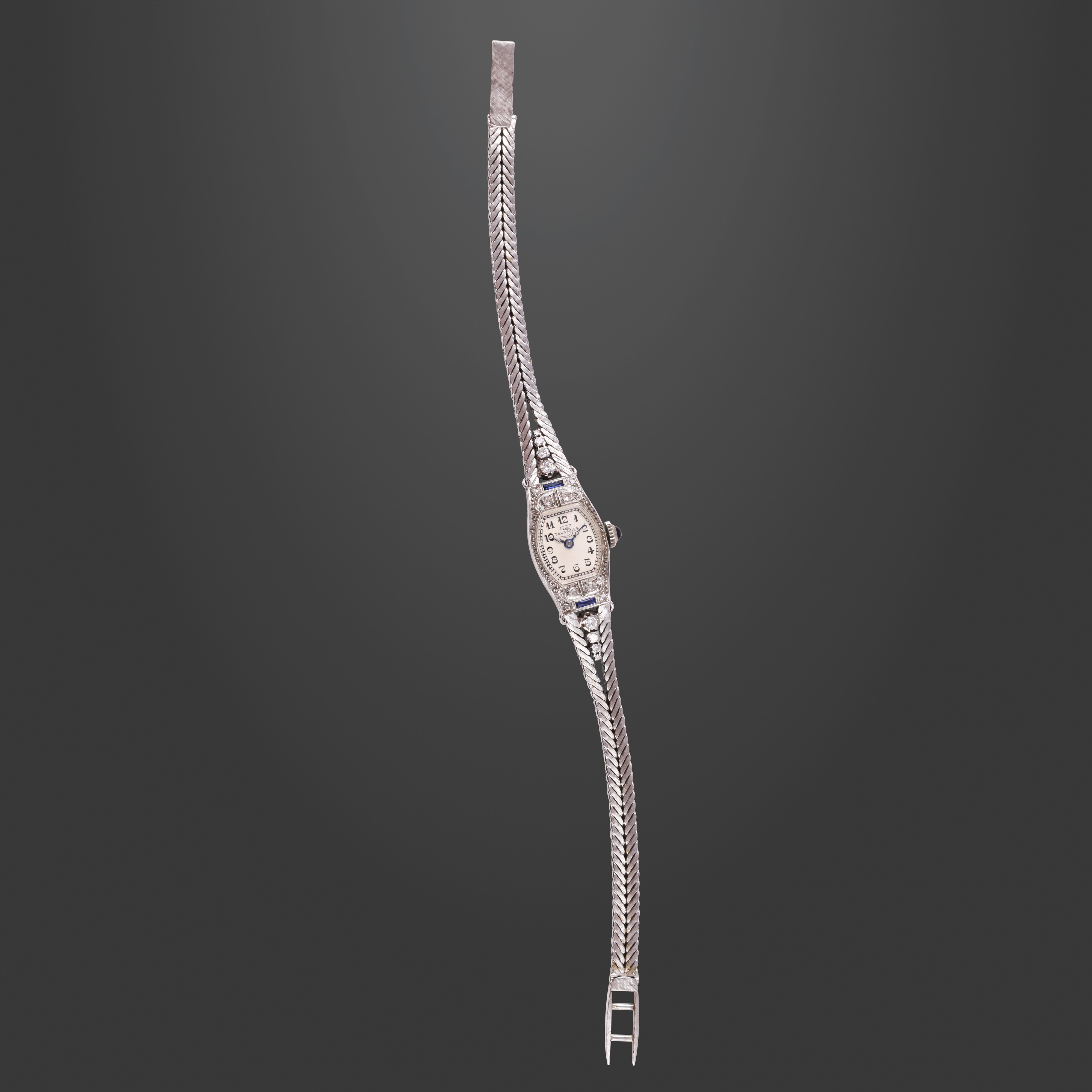 in oro bianco e platino, ornato da brillanti e pietre sintetiche, quadrante con numeri romani, carica manuale, marcato Tavannes, gr. lordi 26,8.
