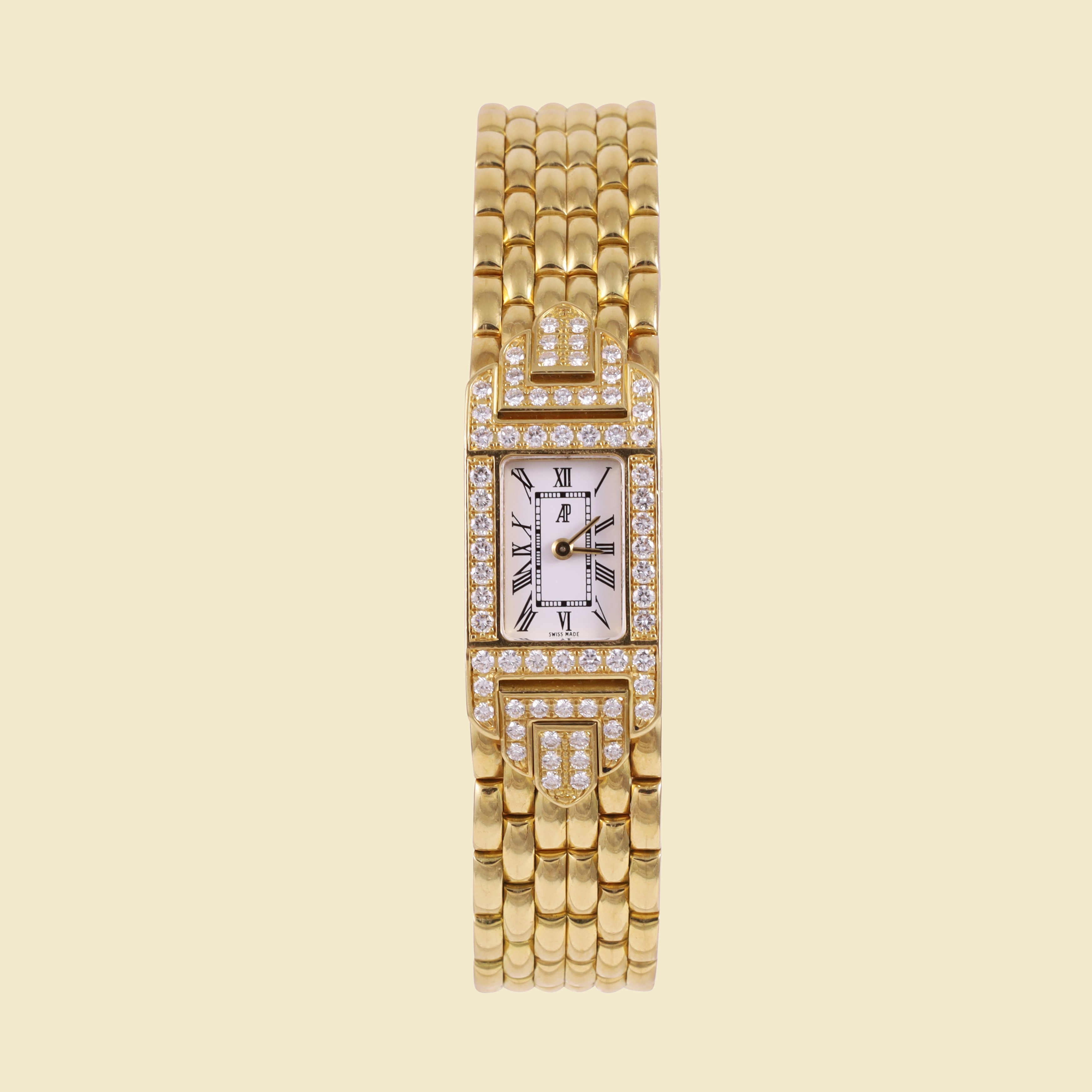 Cassa: in oro giallo 18K e brillanti, fondello serrato da viti. Vetro zaffiro