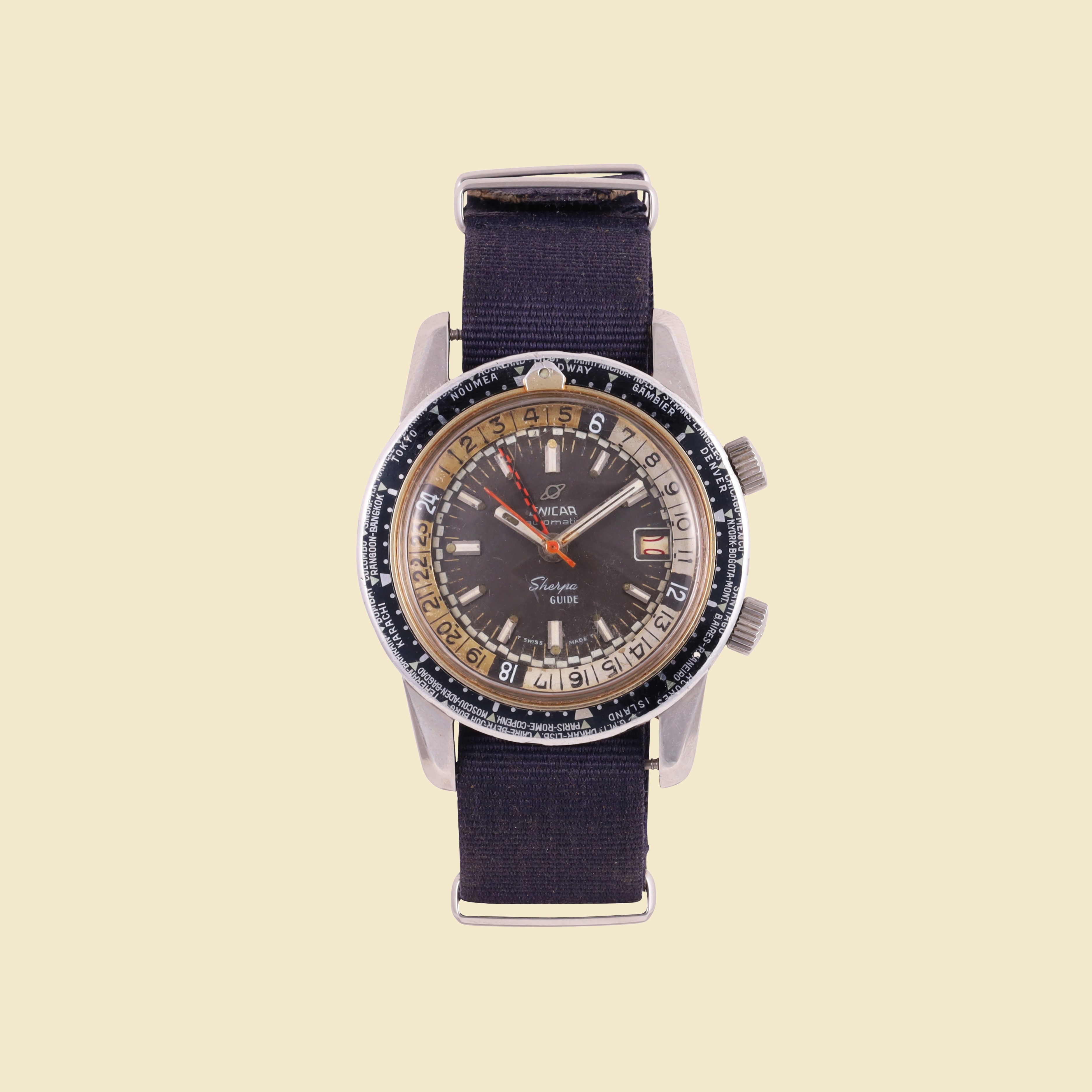 Cassa: in acciaio, fondello a vite con logo, ghiera bidirezionale con indicate città del mondo