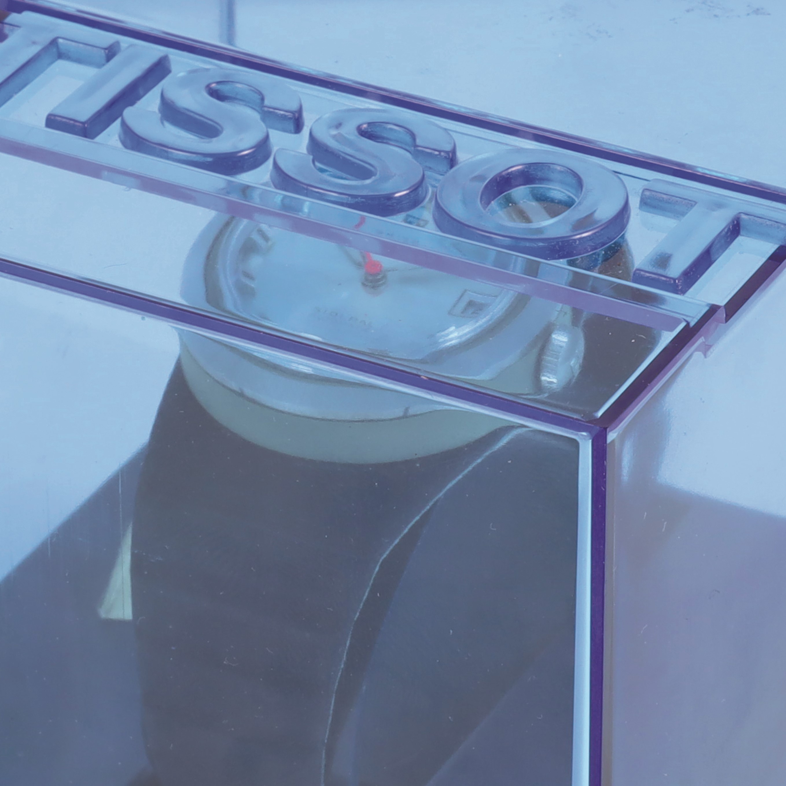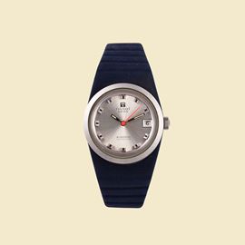 Quadrante: grigio, indici sfaccettati, datario. Sfere a bastone