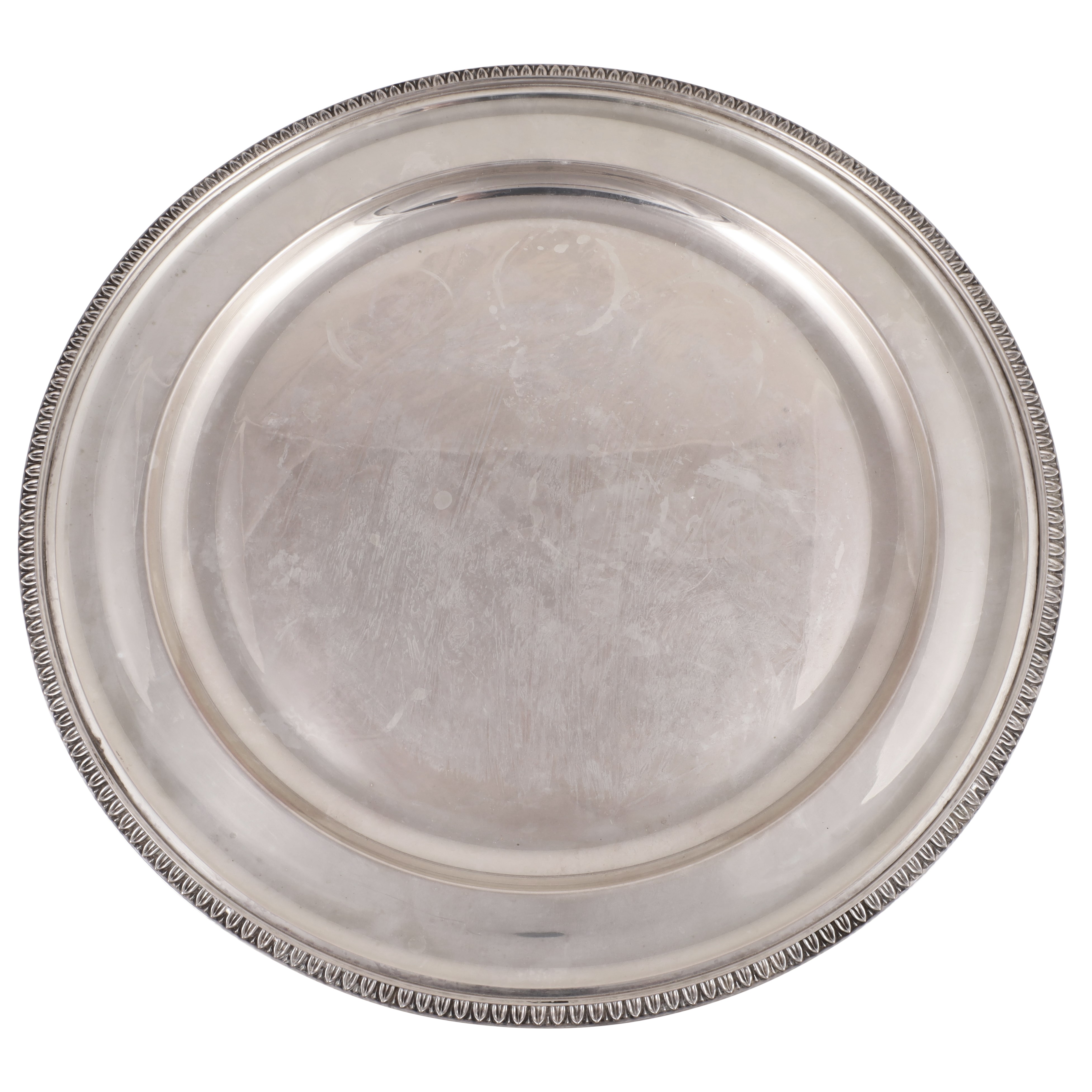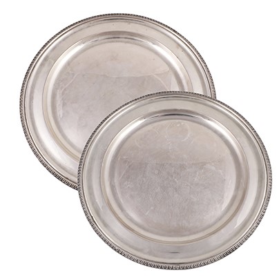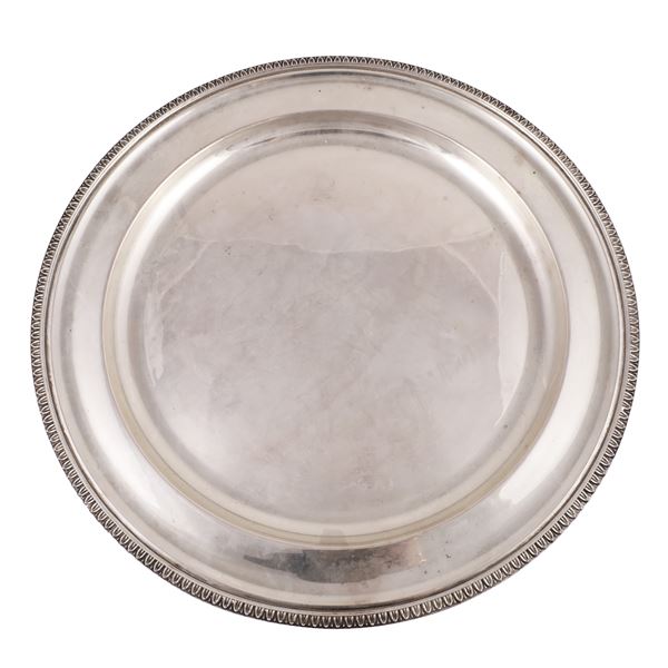in argento lucido, a corpo circolare con bordura a palmette, gr. complessivi 1.670 ca.