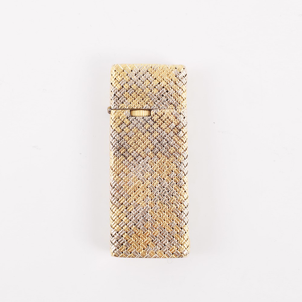 in lamina d'oro giallo e bianco lavorato a motivo intrecciato, gr. lordi 48.
