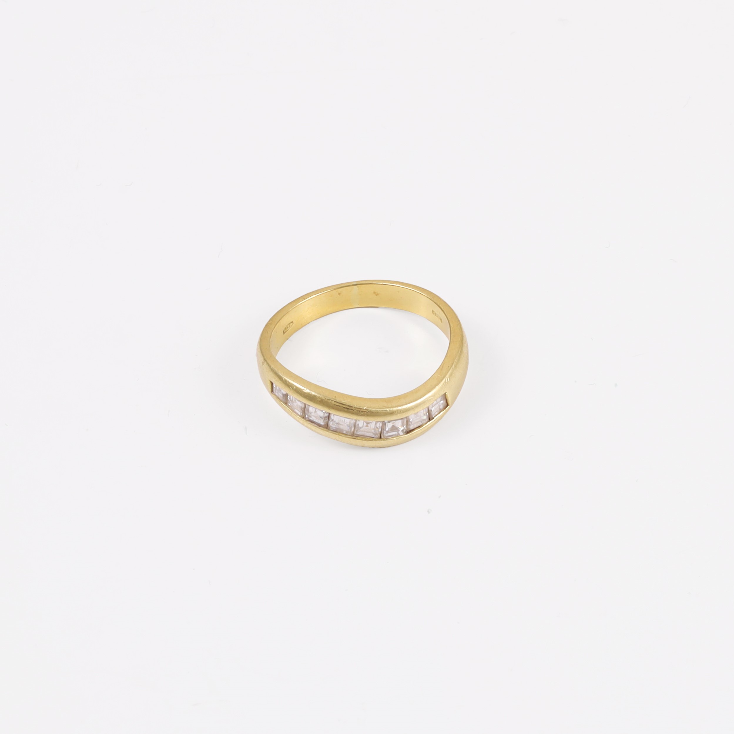 rivière ondulata in oro giallo con parte superiore ornata da diamanti taglio carré, gr. 3,9.