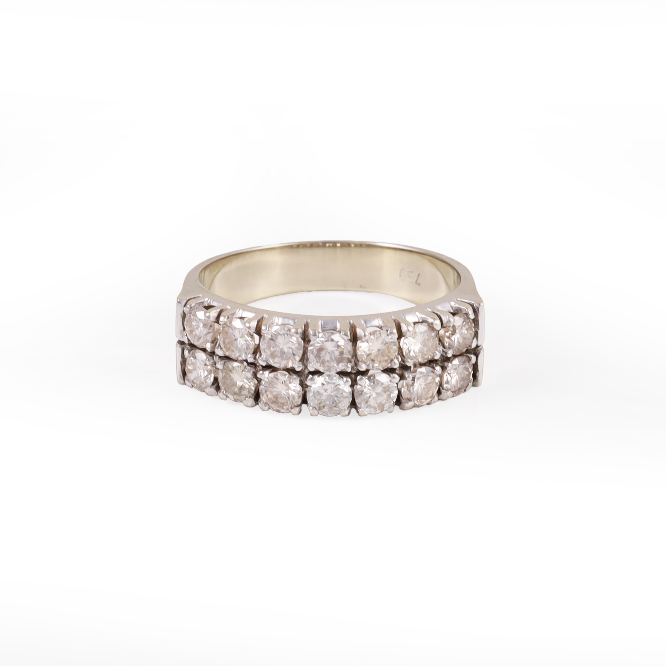 in oro bianco, ornato da brillanti disposti su due file, gr. 5,6.