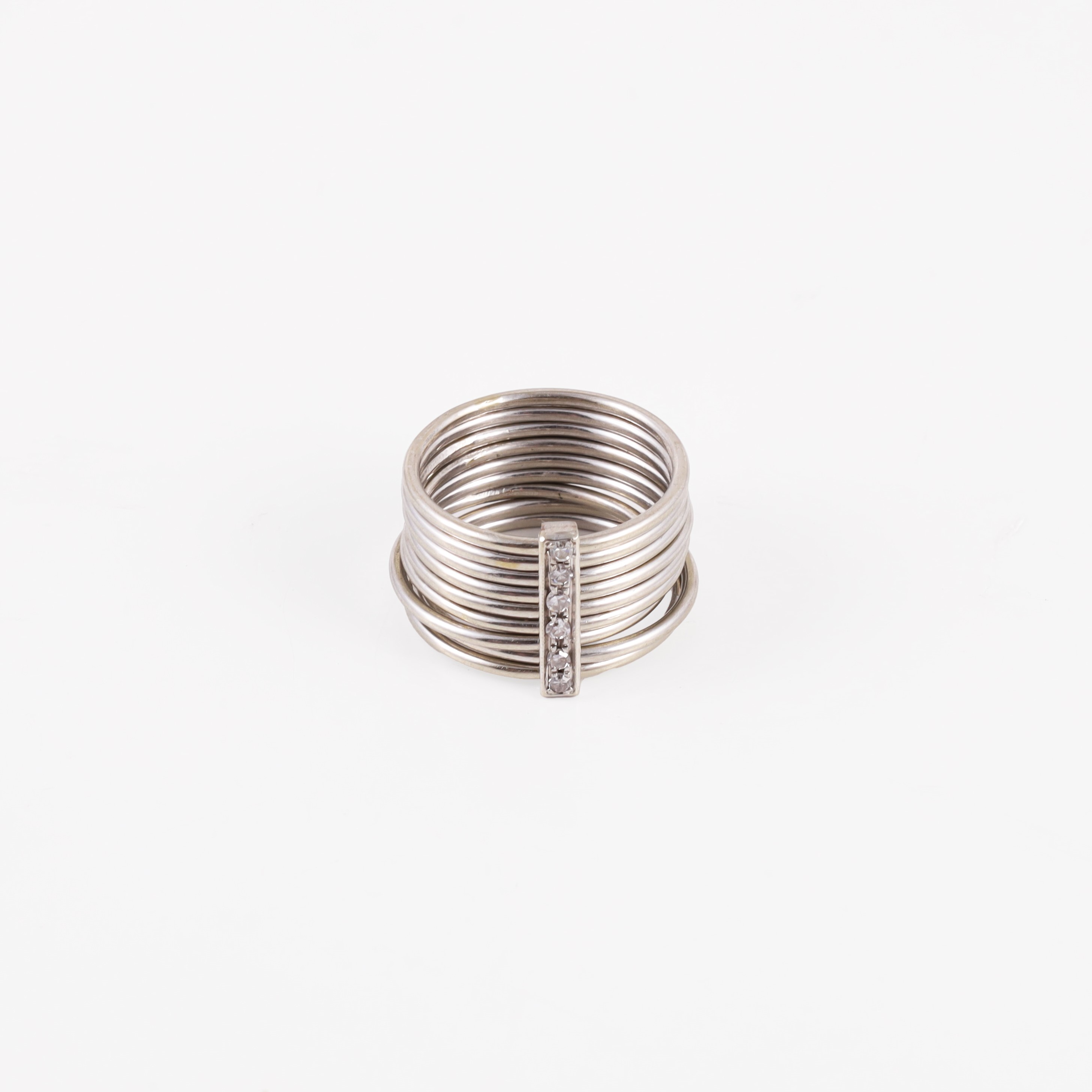 fascia a più fili in oro bianco e diamanti, gr. 6,8.