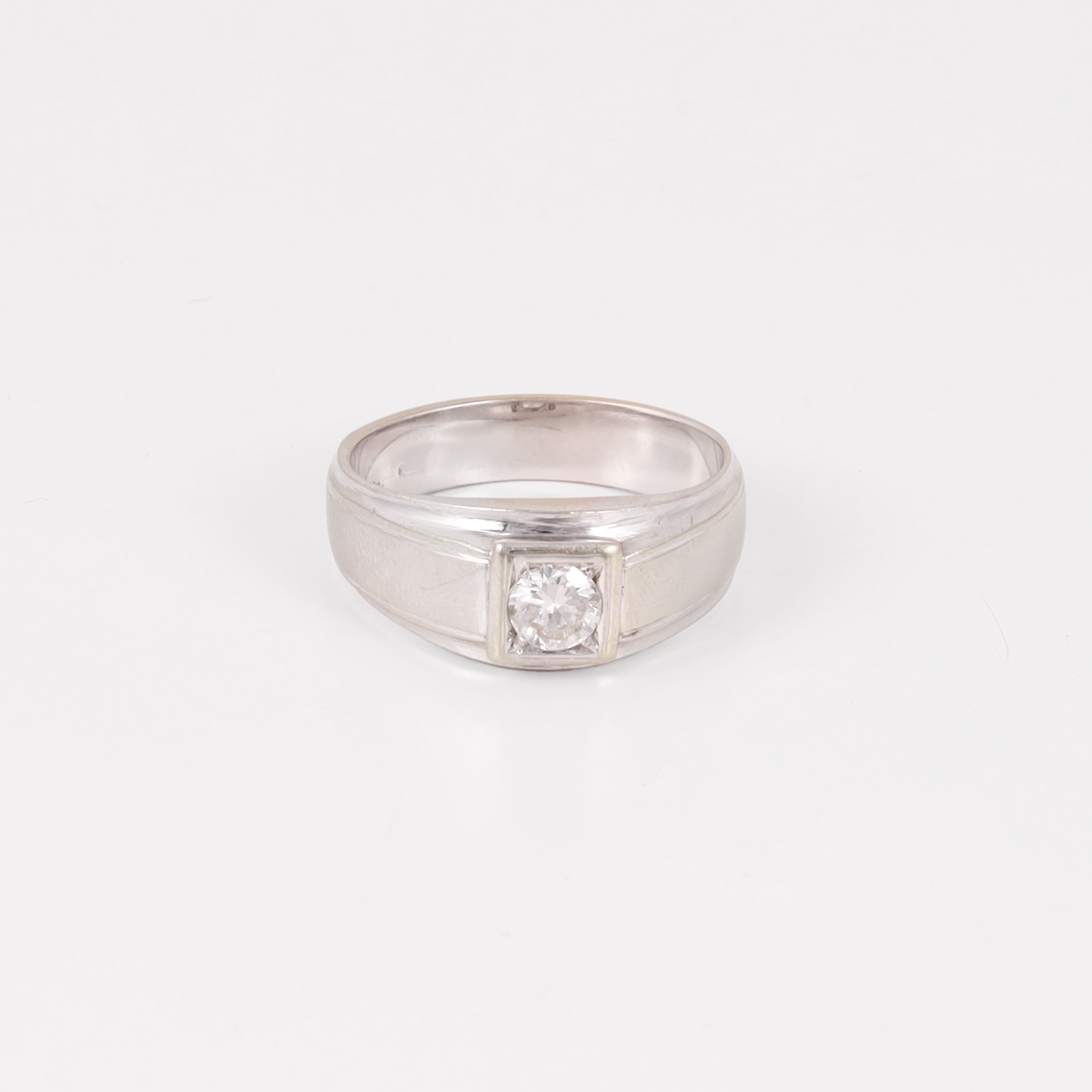 in oro bianco, a fascia con brillante del peso di 0,35 ct ca., gr. 9,2.