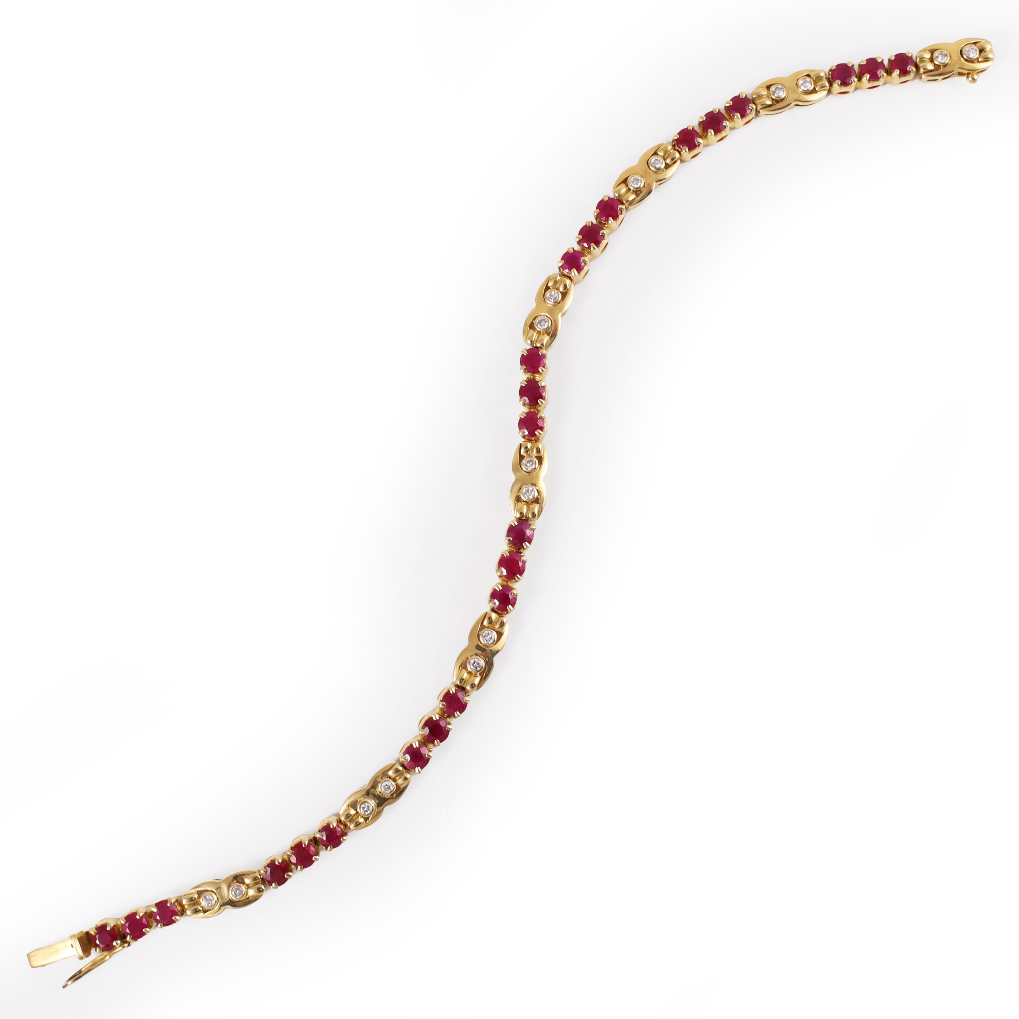 rivière in oro giallo con rubini e brillanti, gr. 15,4.