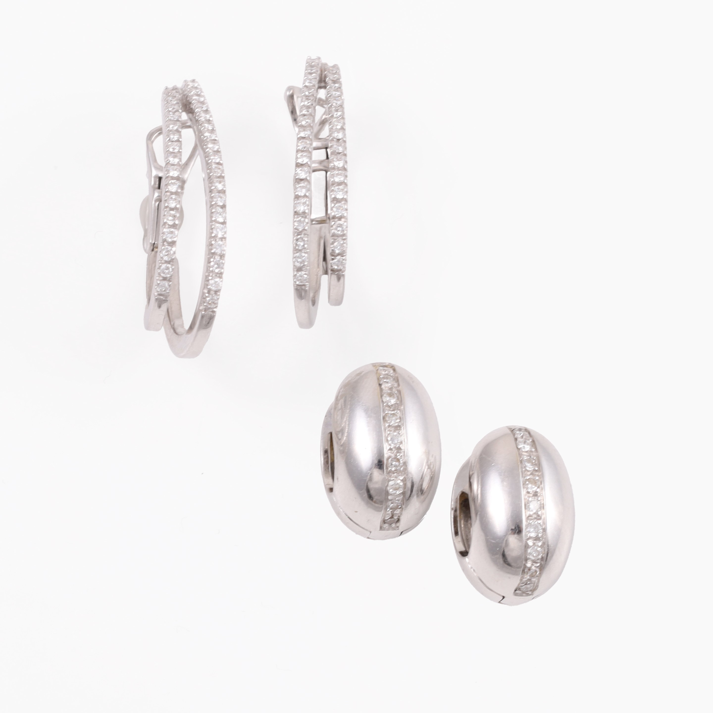 composto da due paia di orecchini a semicerchio, realizzati in oro bianco e brillanti, gr. complessivi 19,2.