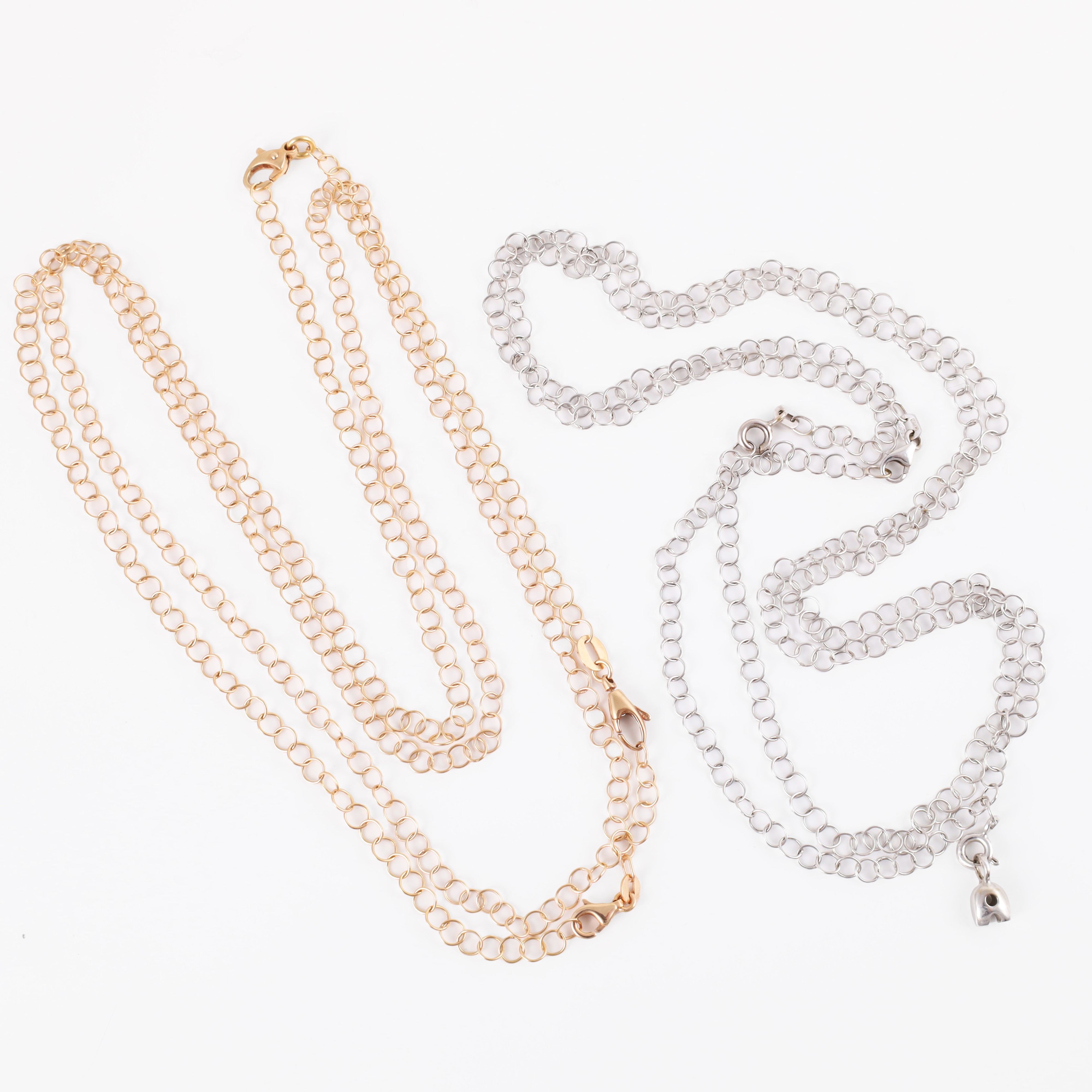 composto da due catene a maglie tonde, in oro bianco e giallo, una con piccola lettera "A" sospesa gr. complessivi 14,6.