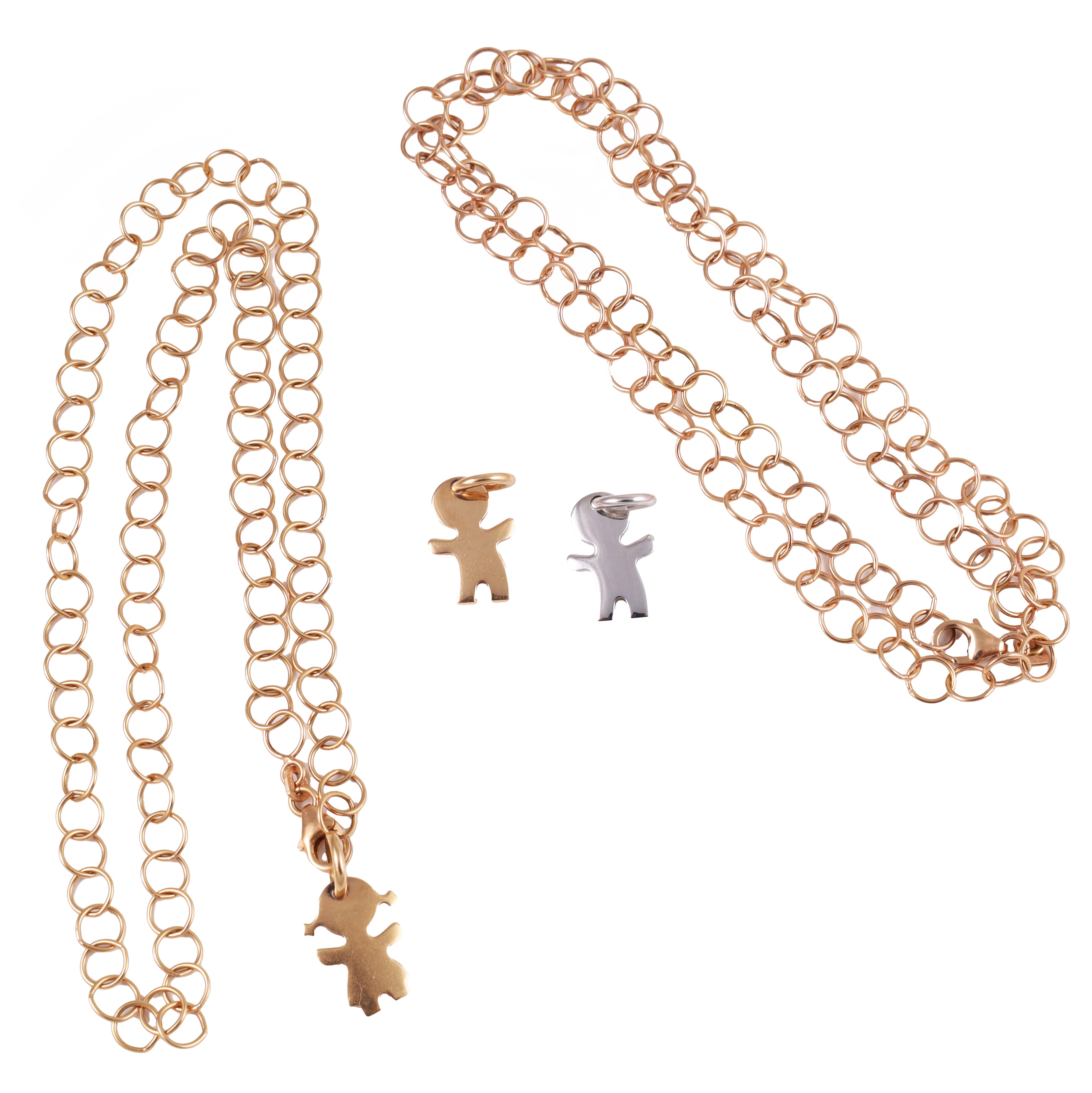 in oro giallo e bianco, composto da due catene a maglie tonde e tre pendenti, gr. complessivi 18.