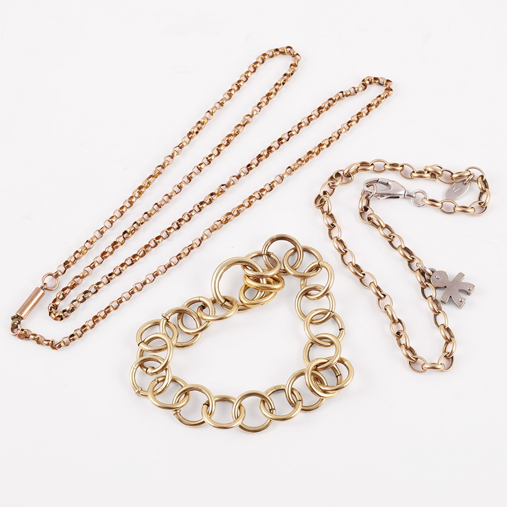 composto da due bracciali e una catena in oro 9KT (gr. lordi complessivi 13,7) e due maglie in oro 18KT firmate Pomellato (gr. complessivi 1,6).