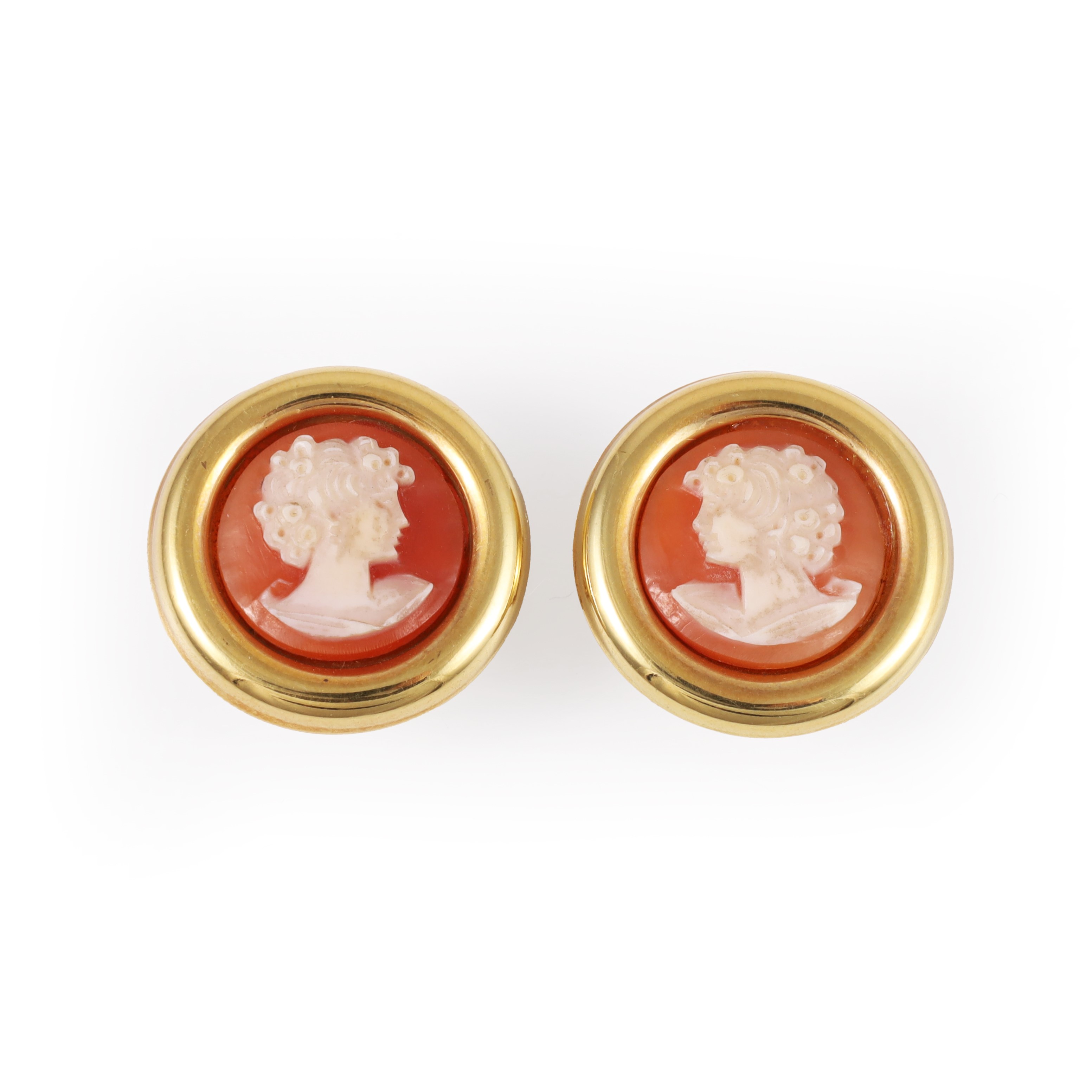 tondi, in oro giallo con cammei di conchiglia, gr. 12,4.