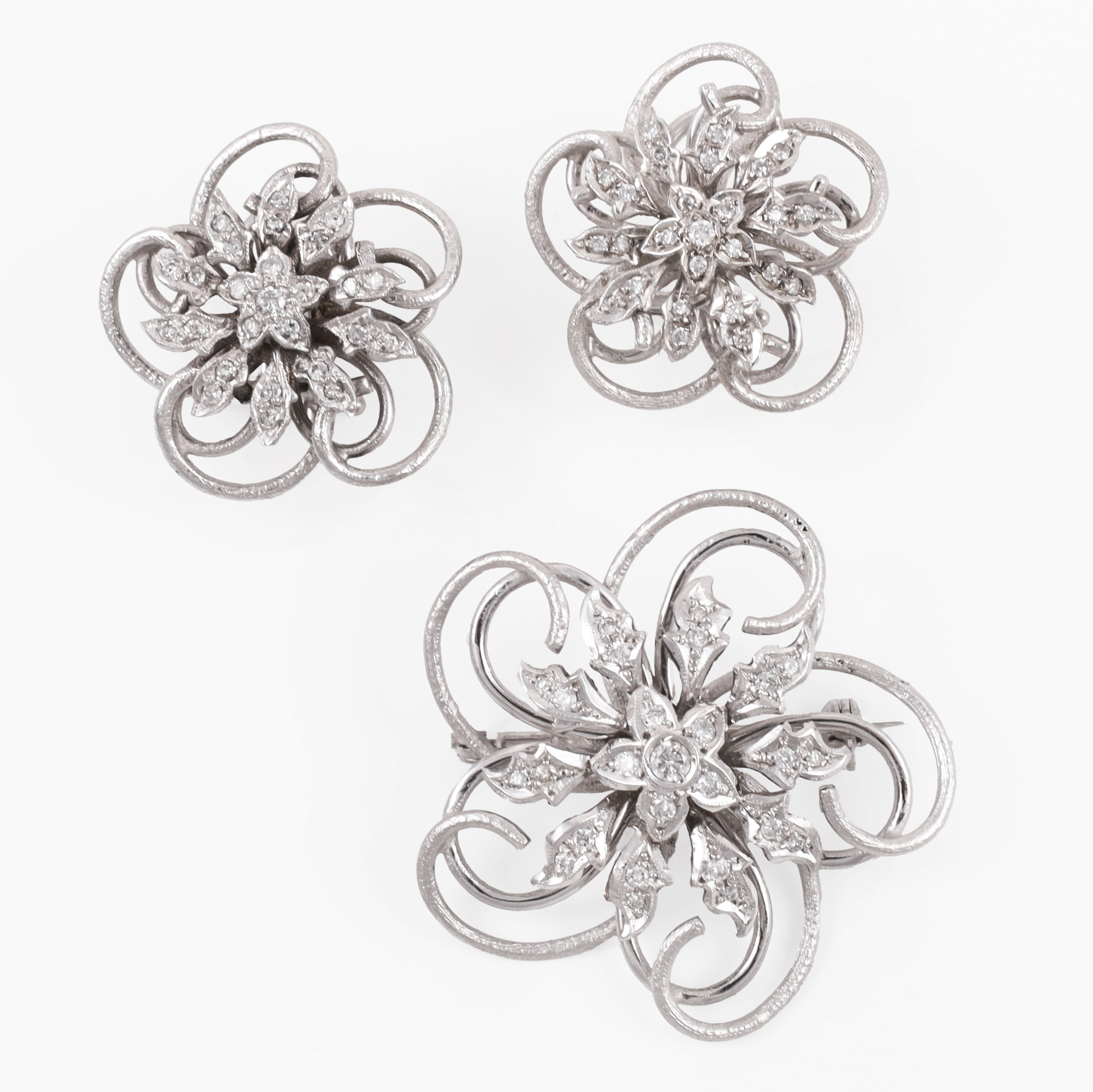 floreale, composta da spilla e orecchini realizzati in oro basso e brillanti, gr. complessivi 22,1.