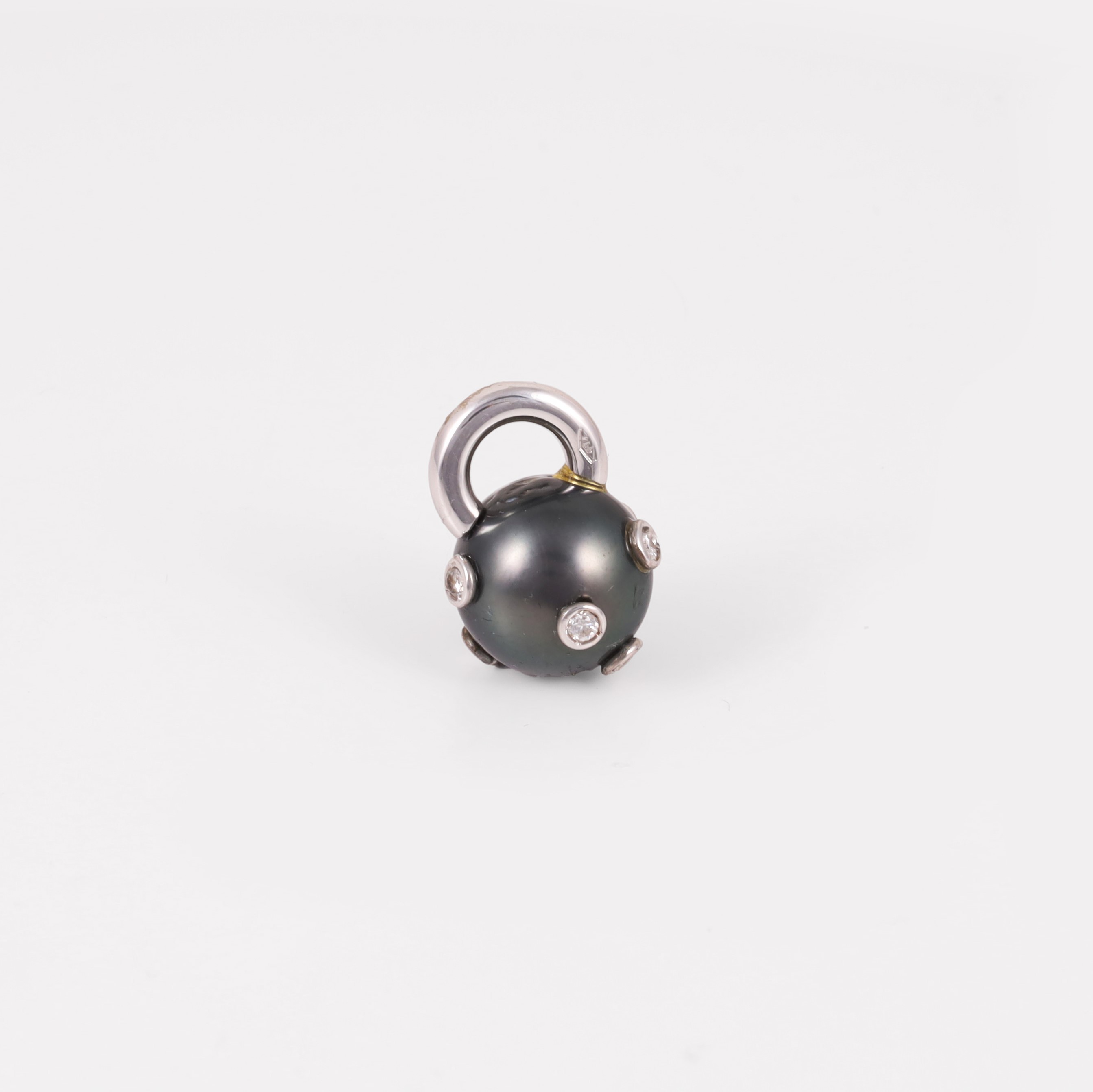in oro bianco con perla Tahiti 13 mm ca., punteggiata da brillanti, gr. 6,9.