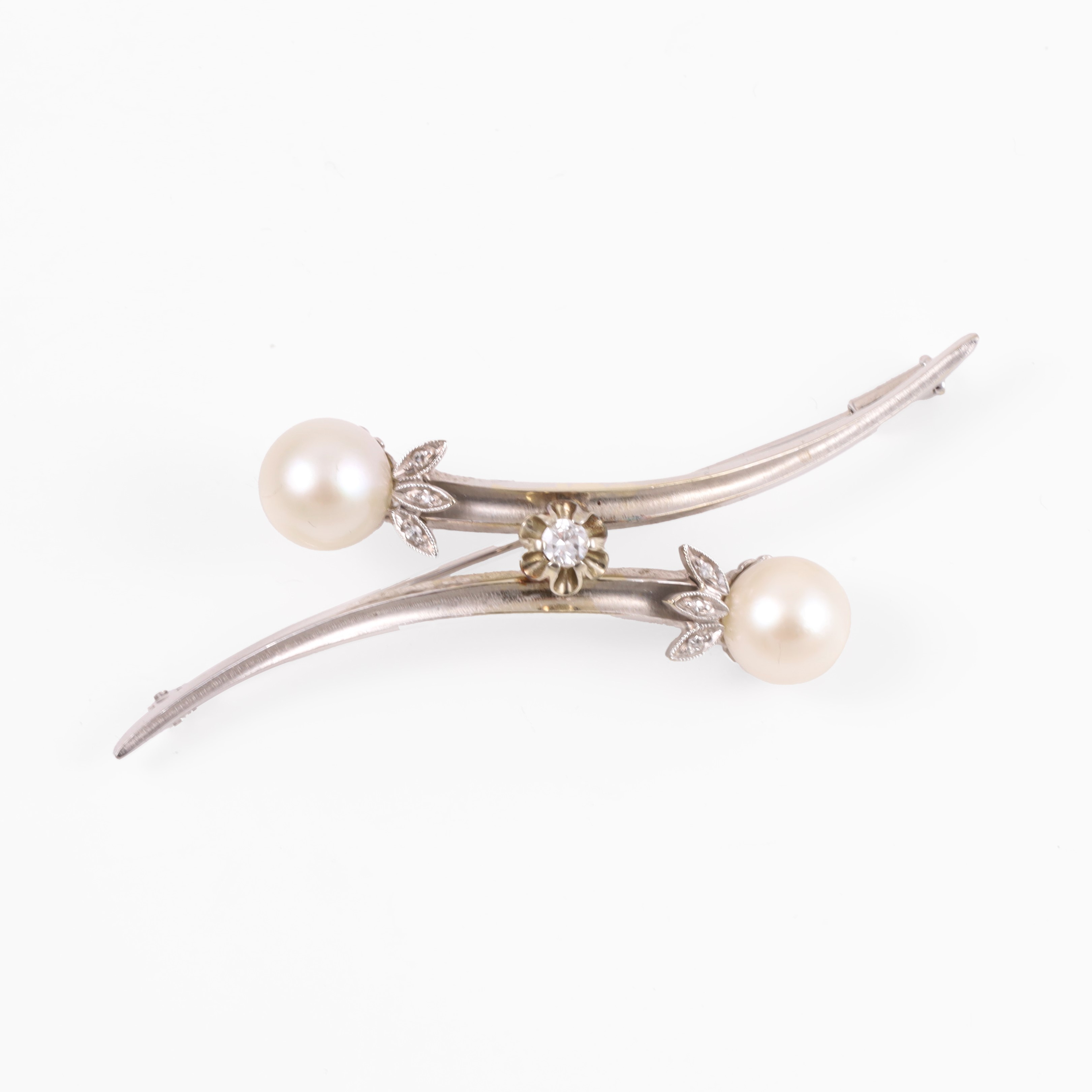 d'ispirazione vegetale, in oro bianco con perle coltivate e diamanti, gr. 7,3.