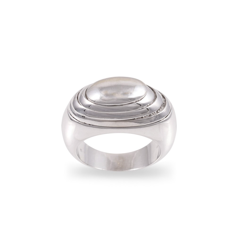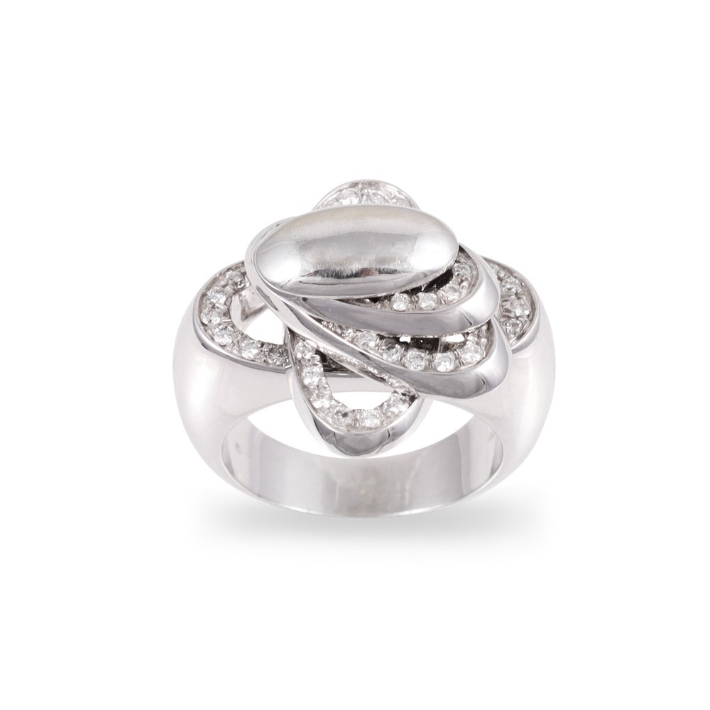 in oro bianco 18Kt, a fascia bombata con motivo a cupola composto da elementi girevoli in brillanti, gr. 20,1.