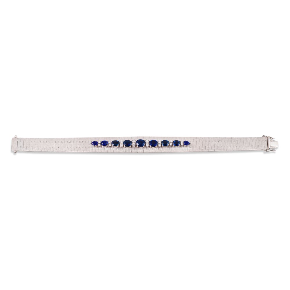 in oro bianco 18Kt, a nastro satinato, impreziosito da zaffiri disposti in linea inframezzati da brillanti, gr. 46.