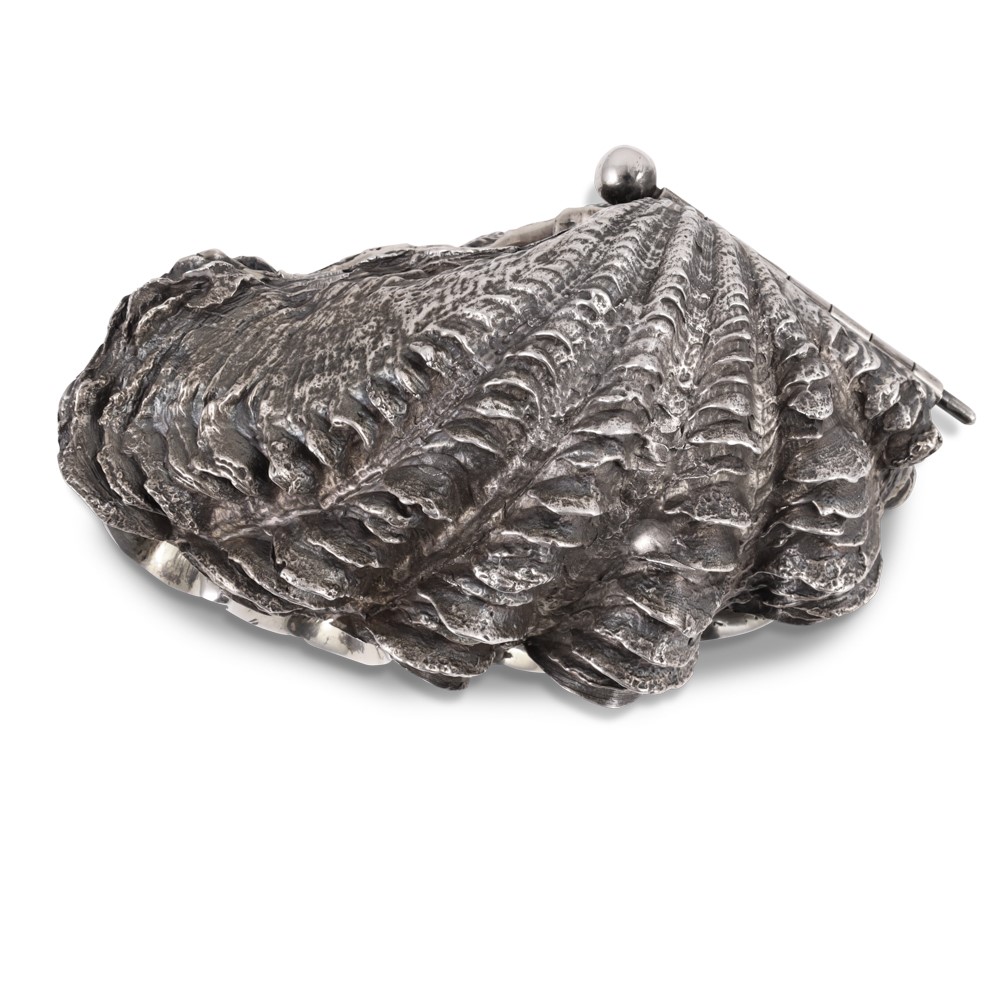 in argento 925/1000 composta da due corpi incernierati apribili, interno vermeil, gr. 1.260.