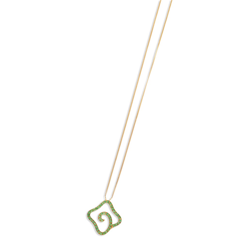 in oro giallo 18Kt con pendente stilizzato ornato da tsavoriti, gr. 6,4.