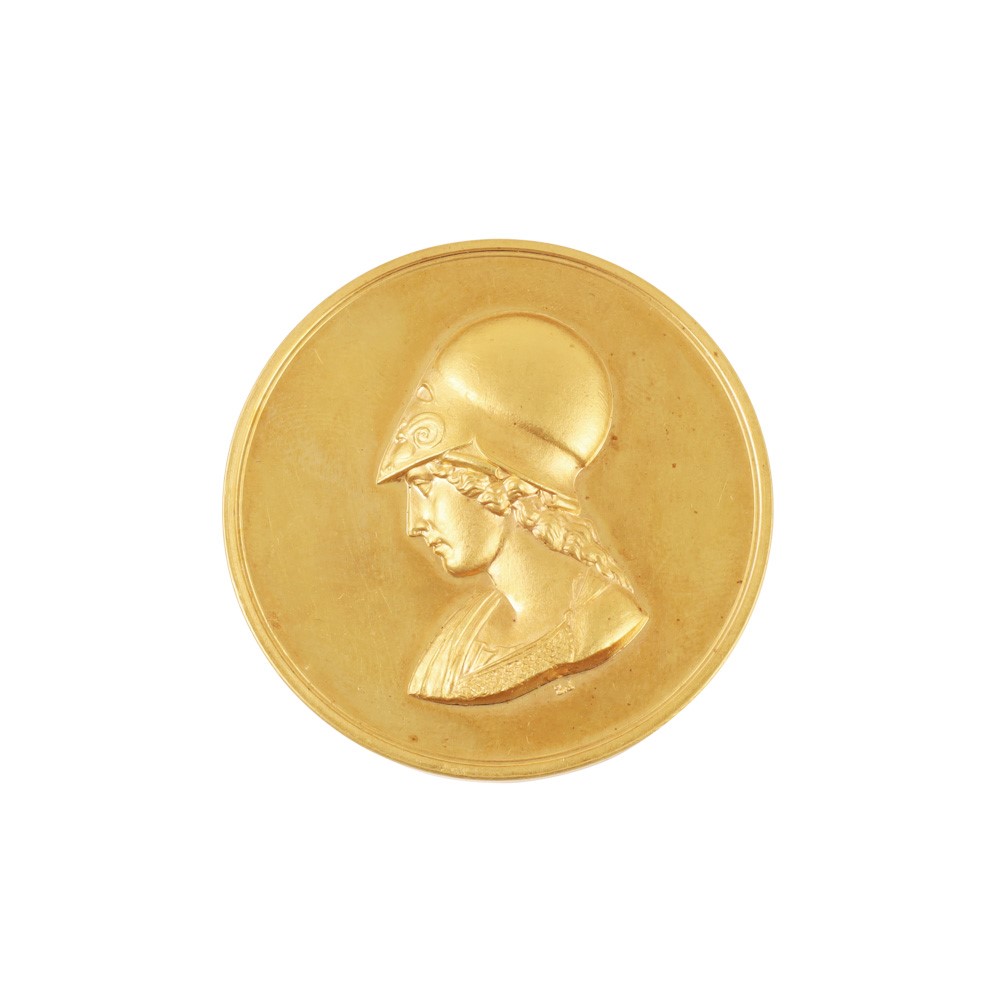 in oro giallo 18Kt, raffigurante profilo di Atena, gr. 29,9. Corredata da custodia.