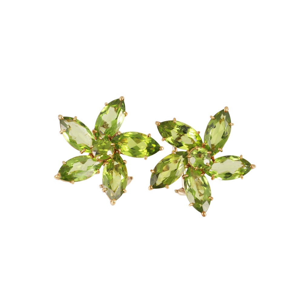 a fiore in oro giallo 18Kt con peridoti, gr. 12.