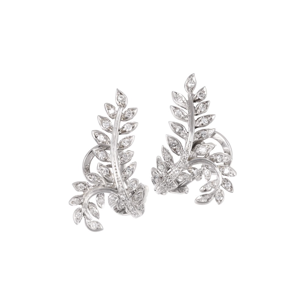 a clip d'ispirazione vegetale, in oro bianco 18Kt e diamanti, gr. 7.