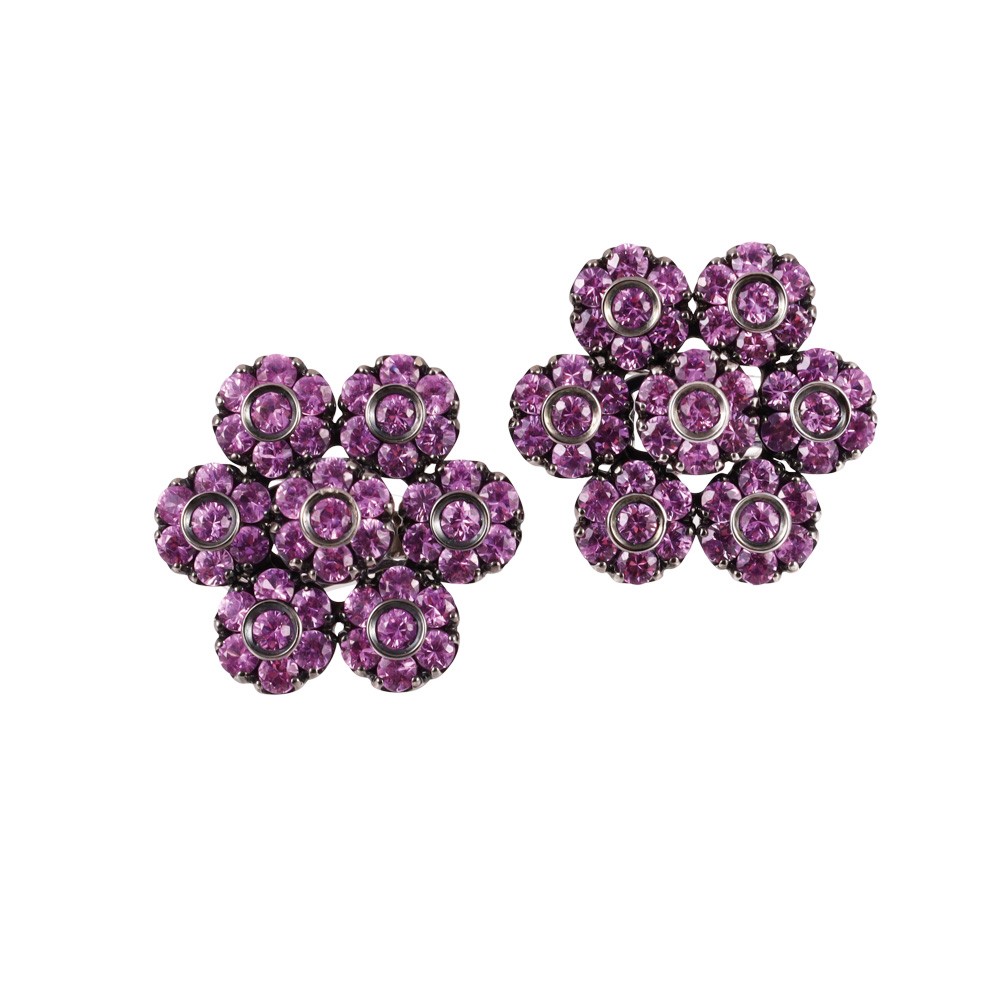 floreali, in oro brunito 18Kt e corindoni rosa, gr. 16,4.