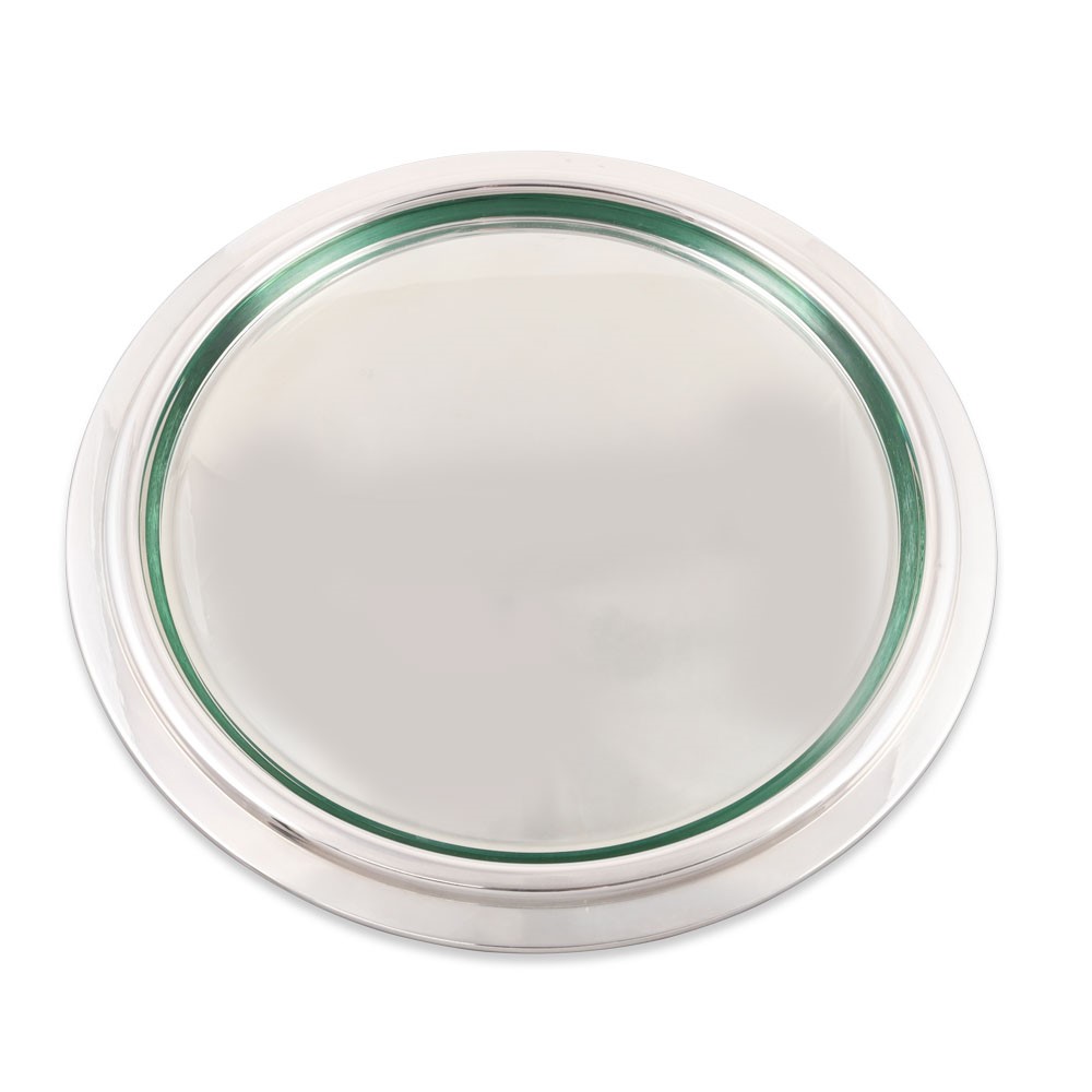 a corpo circolare in argento liscio 925/1000 con disco interno in vetro, gr. netti 660 ca. (difetti).