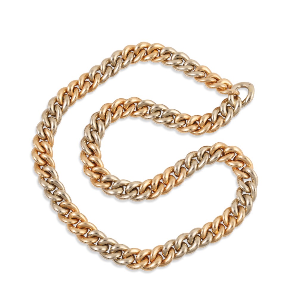 a maglia groumette, in oro giallo e bianco 18Kt, gr. 161,4.
