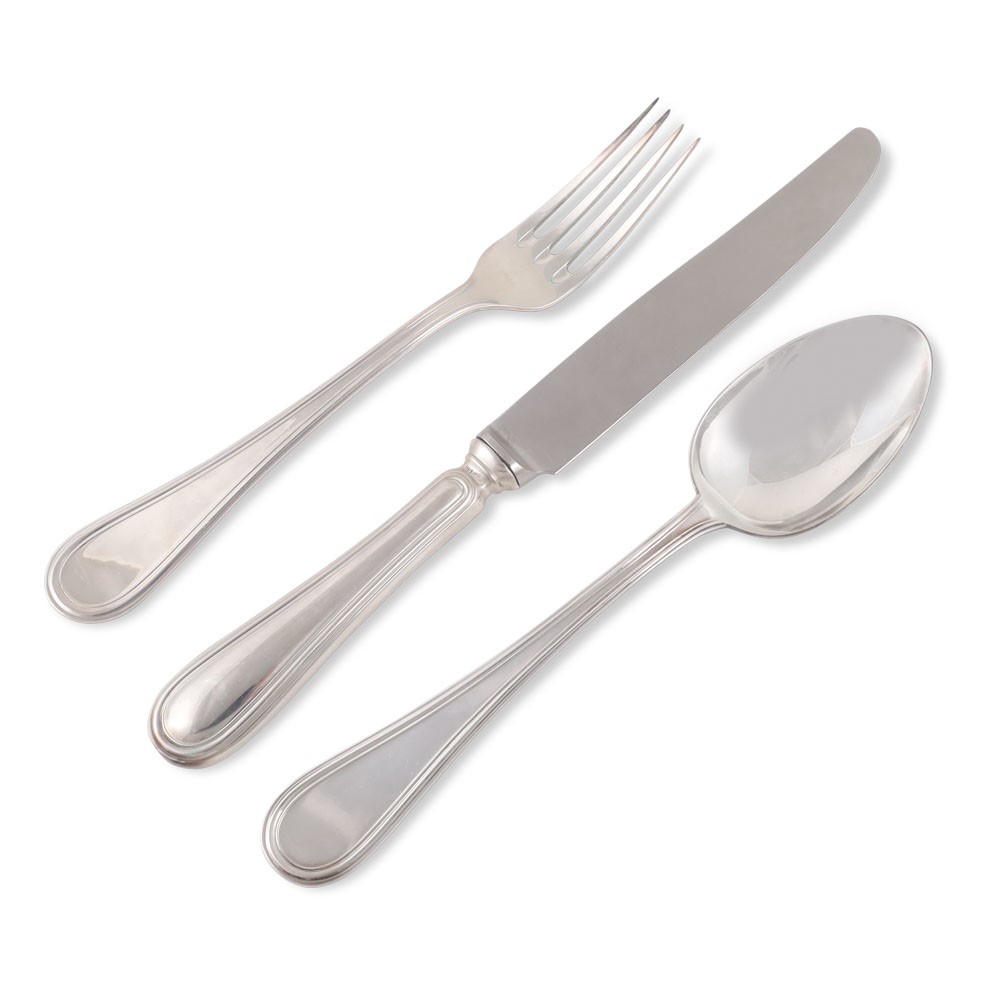 in argento 800/1000, composto da 77 pezzi, manici lisci gradinati, gr. complessivi 2.600 ca. (esclusi pezzi con parti in acciaio).