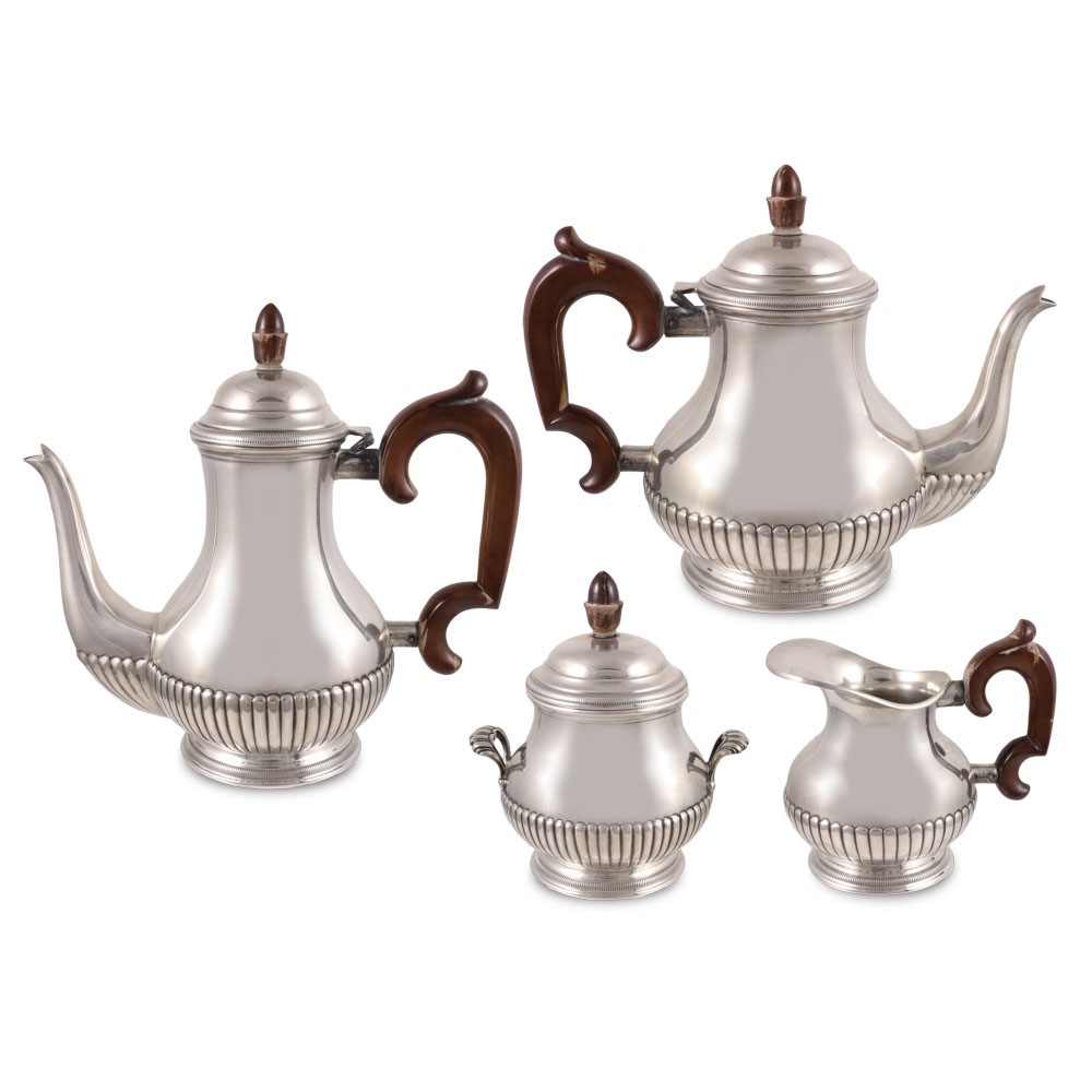 a corpo ovale in argento 800/1000 liscio con bordura godronata, gr. 1.740.