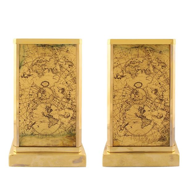 Fine, rectangular gilt brass and perspex (lucite) mantel clock with sky-map panels and wound by barometric pressure changes