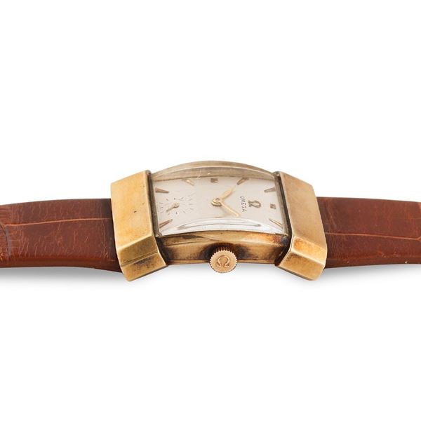 Fine, rectangular shaped, 14K yellow gold wristwatch Made in 1944
