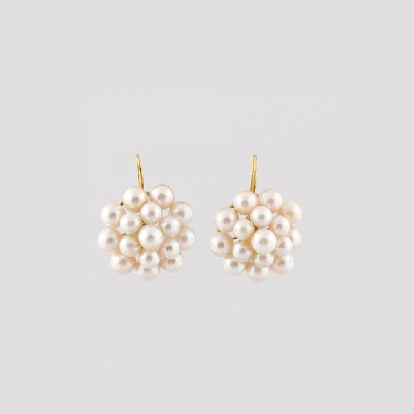 RING AND PAIR OF CULTURED PEARL, DIAMOND AND GOLD EARRINGS