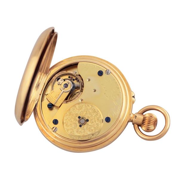 Fine, half-hunter, 18K yellow gold pocket watch. Made circa 1890
