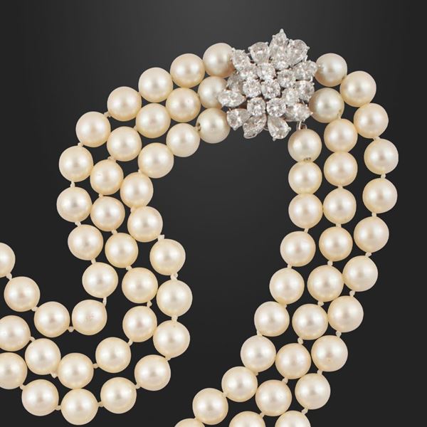 18Kt gold, cultured pearls and diamonds