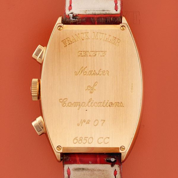 Fine, curvex, self-winding, 18K pink gold chronograph with original gold buckle