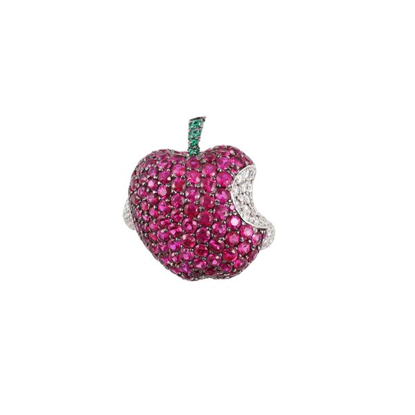 * 18KT GOLD, RUBIES, DIAMONDS AND EMERALDS (one missings) RING, DE GRISOGONO